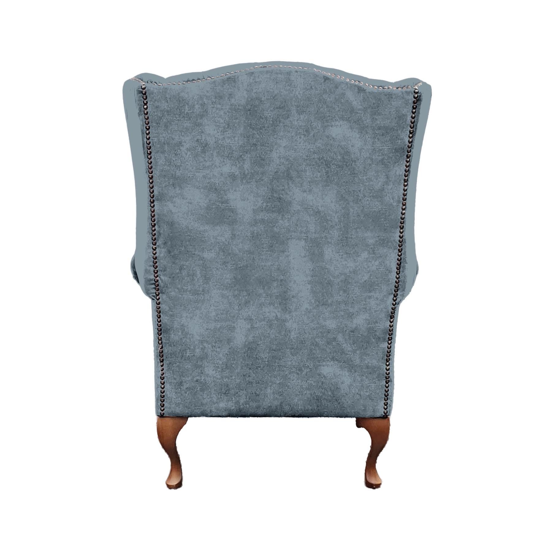 All our chairs are manufactured to order in our workshop based in East Sussex. The frames are made from solid hardwood and are all dowelled, screwed and glued. Unlike most Chesterfield style chairs, we have opened up the wing and made the seat slightly wider and deeper. A common complaint with this style of chair, is the size which can often feel too small and restrictive to be comfortable. All our chairs have a sprung back and sprung base, this is a huge improvement over the standard webbing found on most chairs, meaning our chairs will never look old and saggy and will always give you the comfort and support no matter how much use it gets. All our chairs are finished with a deep buttoned back and antique studding, along with Queen Anne style legs which sets off the luxury velvet style beautifully.